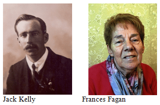 Frances Fagan initially explains that she had four brothers and one sister. Tragically her mother, Mary Bridget Kelly, died at the age of 33 when Frances was six days old. Her father, Jack Kelly, worked as a cattle dealer. Frances recalls the 1966 commemorations of the Rising, and says that her father was a supporter of Michael Collins. His brothers, Michael and Christopher Kelly, also took part in the nationalist struggle, and Michael, who was godfather to Frances, is recalled. Jack Kelly never spoke to his children about his role in the struggle, and he is recalled as a man who worked hard all his life to provide for his family. Frances knows very little about Jack’s activities, partly because she was reared by her grandmother until she was six years old. She recalls details of her grandmother’s family. She recalls the fact that her father was friendly with Pat Macken and Peter Brady, and that they would socialise together and attend race meetings and the dog track. Jack Kelly died in 1979 and his wish was that he would not be afforded a military funeral. Frances is not aware of a military element to her uncle Michael Kelly’ funeral. Frances fondly recalls Nancy Rogers, wife of her uncle Michael, and also Mary Byrne, both of whom were involved in nationalist activities. She is aware that these women acted as messengers but they never spoke to her of their activities She reflects upon the form she would like the centenary commemorations of the Rising to take. She explains the reason why her parents are buried in different locations. She remarks that she is not as interested in history as had been her late brother. She recalls just one remark made by her father to her cousin about the location in Beggstown used by the Black and Tans. Apart from this, very little is known about Jack and Michael Kelly’s roles in Ireland’s struggle.