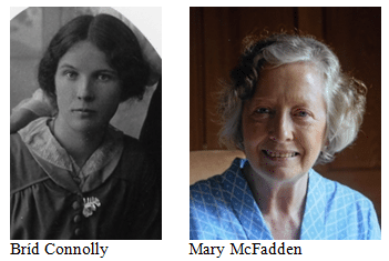 Bríd Connolly was grandaunt to Mary McFadden and she lived in the home of Mary’s mother, Rosaleen Shanahan, in Whitehall for 21 years. Mary provides details of family life at that time, when she was quite unaware of Bríd’s involvement during the revolutionary period. Mary qualified as a nurse in 1969 and went on to Edinburgh and London for further training. After her return home, her grandaunt Bríd developed dementia. She was bedridden for the final few years of her life. Mary recalls some remarks she had made relating to her arrest and release. A photograph of Bríd Connolly with her two sisters, Ellie and Mary, taken probably at Artane where the Connollys lived when they came to Dublin from Carlow, is discussed. Mary feels that the Connollys may have been evicted from their land in Carlow. Bríd was the youngest of seven children, just one of whom married. She was Mary’s grandmother Katherine. Mary reads from Bríd’s application for the military service pension and from a sworn statement made in 1936. Bríd Connolly was Captain of her branch of Cumann na mBan in 1919 and was appointed secretary in 1920. In 1921 she became a member of the Executive. Her activities during the Rising in carrying despatches and moving ammunition are detailed. Bríd was a teacher by profession. A family story goes that her uniform is plastered into the ceiling of her sister’s old home at Quarryland, Dunboyne in Co. Meath. Mary feels sad that she did not know more about her grandaunt’s activities while she was alive. The night of her death is recalled. Her burial place is in Carlow. Mary is certain that her grandaunt was a supporter of Michael Collins, and she explains that Bríd and her father would have political discussions. Her father was a strong supporter of Fianna Fáil. Bríd’s father was a nightwatchman at CBS Artane and one of her brothers worked in the grounds. The family lived at Kilmore Cottages in Artane, which were tithe houses associated with CBS Artane. To the Connolly family, Friarstown in Carlow was always home. A photograph taken in 1953 in Wexford, showing Bríd at the ordination of Mary’s uncle Ultan, is discussed. Mary reads further from Bríd’s sworn statement relating to her work during the Easter Rising. She evaded arrest by leaving Dublin city centre and staying at home while awaiting further orders. In the statement Bríd indicates that she stored arms from the Howth gun-running until Easter Week and again in 1919. She also looked after the dependents of men in prison, and Mary discusses her nursing work. Bríd’s father died in 1915 and in 1916 Bríd lived in the house in Artane with her mother, her sister Ellie and her brother Pat. Further extracts from Bríd’s statement are read. During the Civil War period she travelled to England about five times to send cables to the USA on the orders of Austin Stack, and she waited there for replies. She also purchased guns. Mary discusses the way in which the guns may have been transported to Quarryland, and explains that the railway line was close to the old family home. She reads from Bríd’s appeal to the Referee of the Military Services Pension Board. In 1921 she acted as secretary of Fingal District, Cumann na mBan which included seven branches. She collected shotguns from local farmers and stored them. She provided first aid at the burning of Santry, Coolock and Raheny barracks. She also carried despatches for Michael Collins and, with her own typewriter, typed up army forms for P. Traynor and Brigadier Dom Collins. Her home was raided by the Black and Tans. She visited prisoners and made her home available for meetings. Mary discusses the reason why her grandaunt may have been initially refused the military service pension which was subsequently granted on appeal. A letter written to Brid by Dr Joe P. Williams of Naas Hospital, possibly when she was in Kilmainham Gaol, is read. Mary explains that the family knew that Bríd had been on hunger strike on two occasions and that her health had been affected. Letters written to her by Dr Williams in later years are also read.